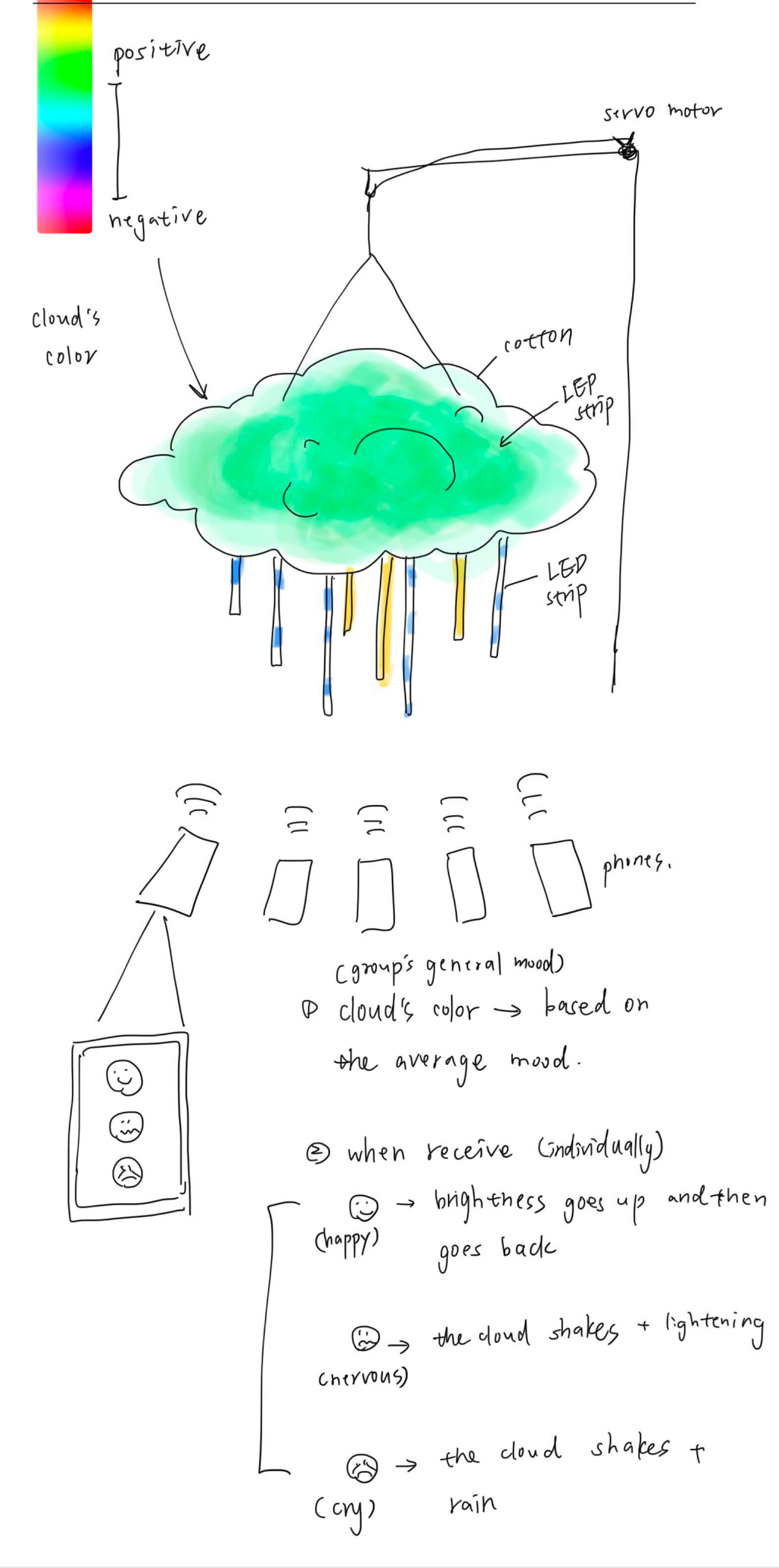 We planned on using MQTT to let multiple devices communicate. Multiple phones can send mood types to the cloud and the cloud will generate the color responding to people's mood.