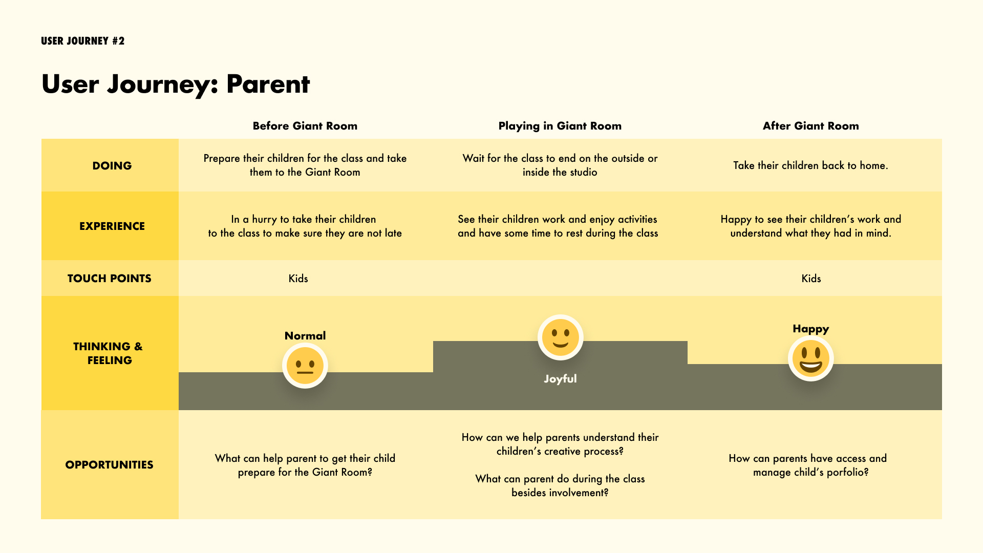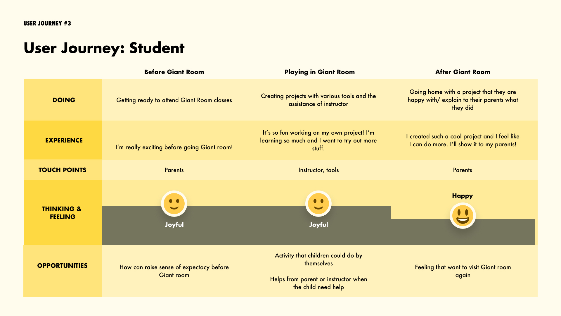 We created a journey map for each personas, from the start to end of the class.
