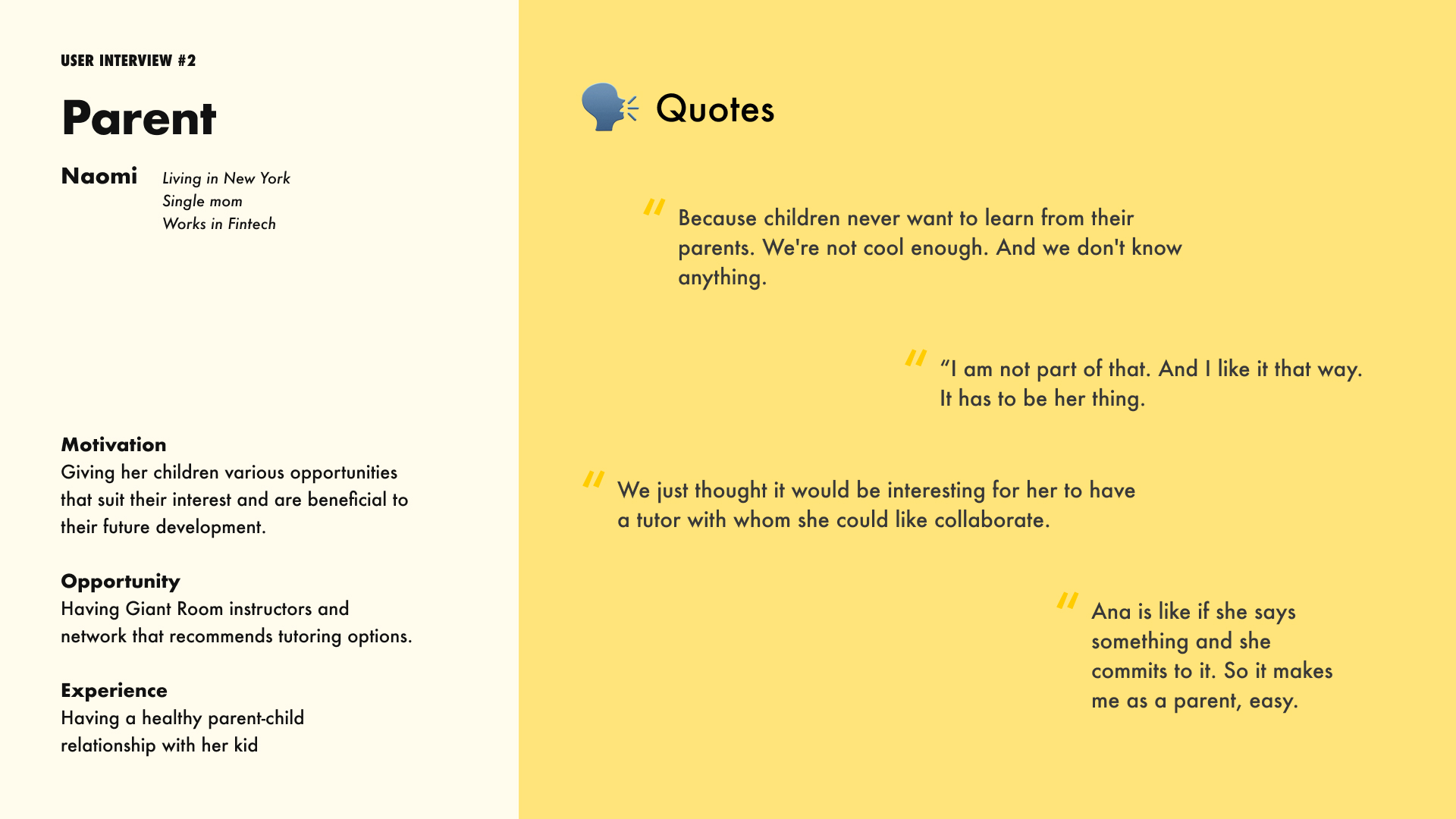After interviewing users, our team created user persona for a teacher, a parent, and a student