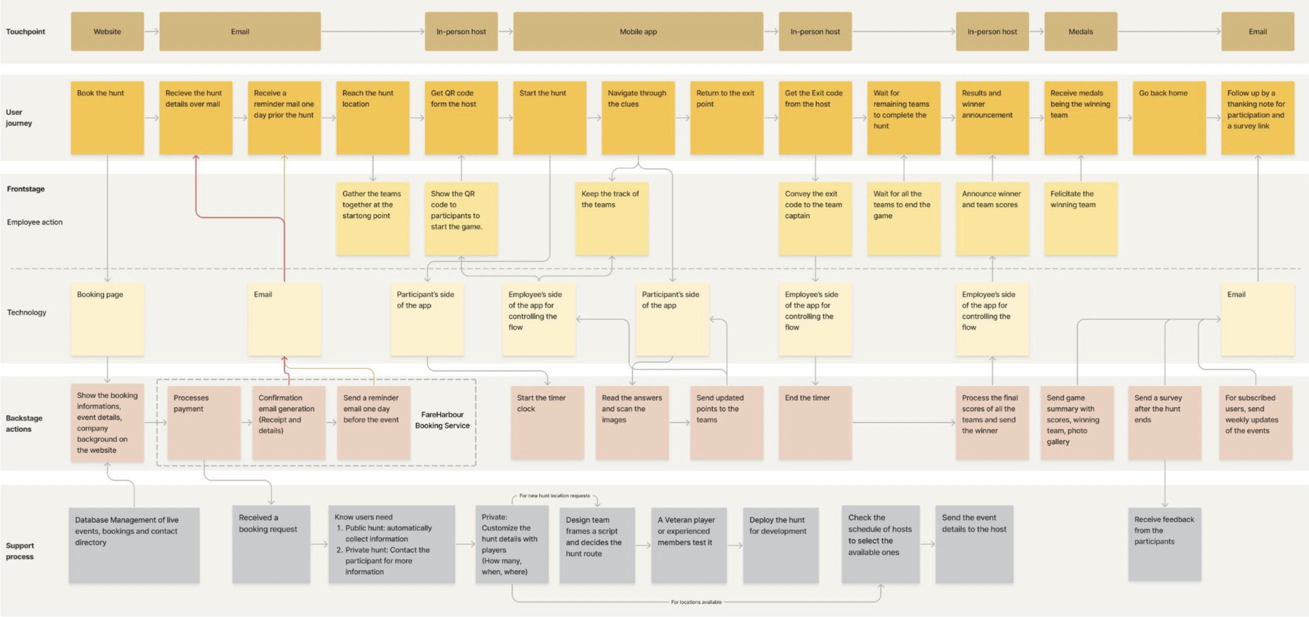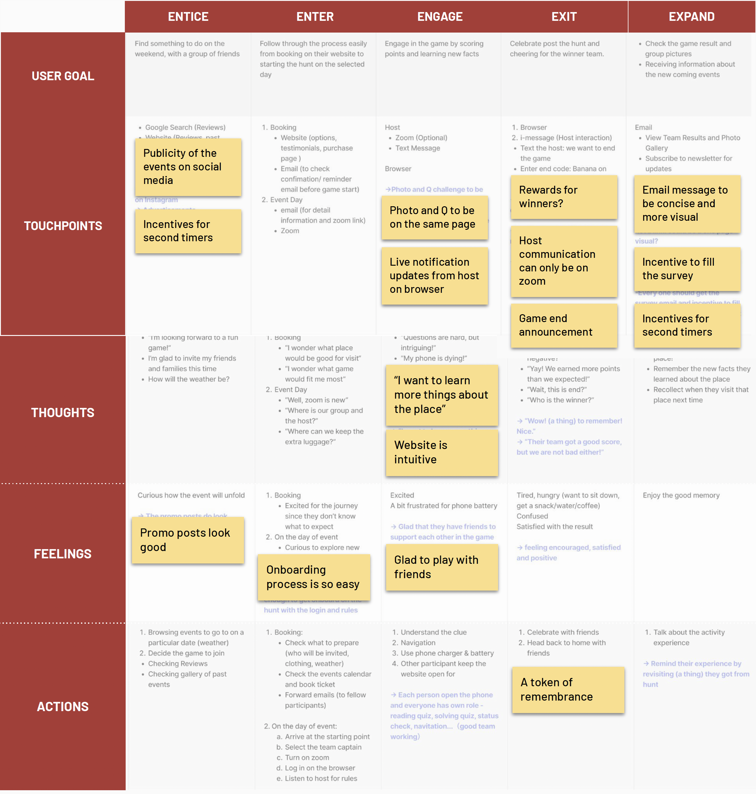 After we participated in the hybrid hunt as a user, we created user journey and came up with first insights.