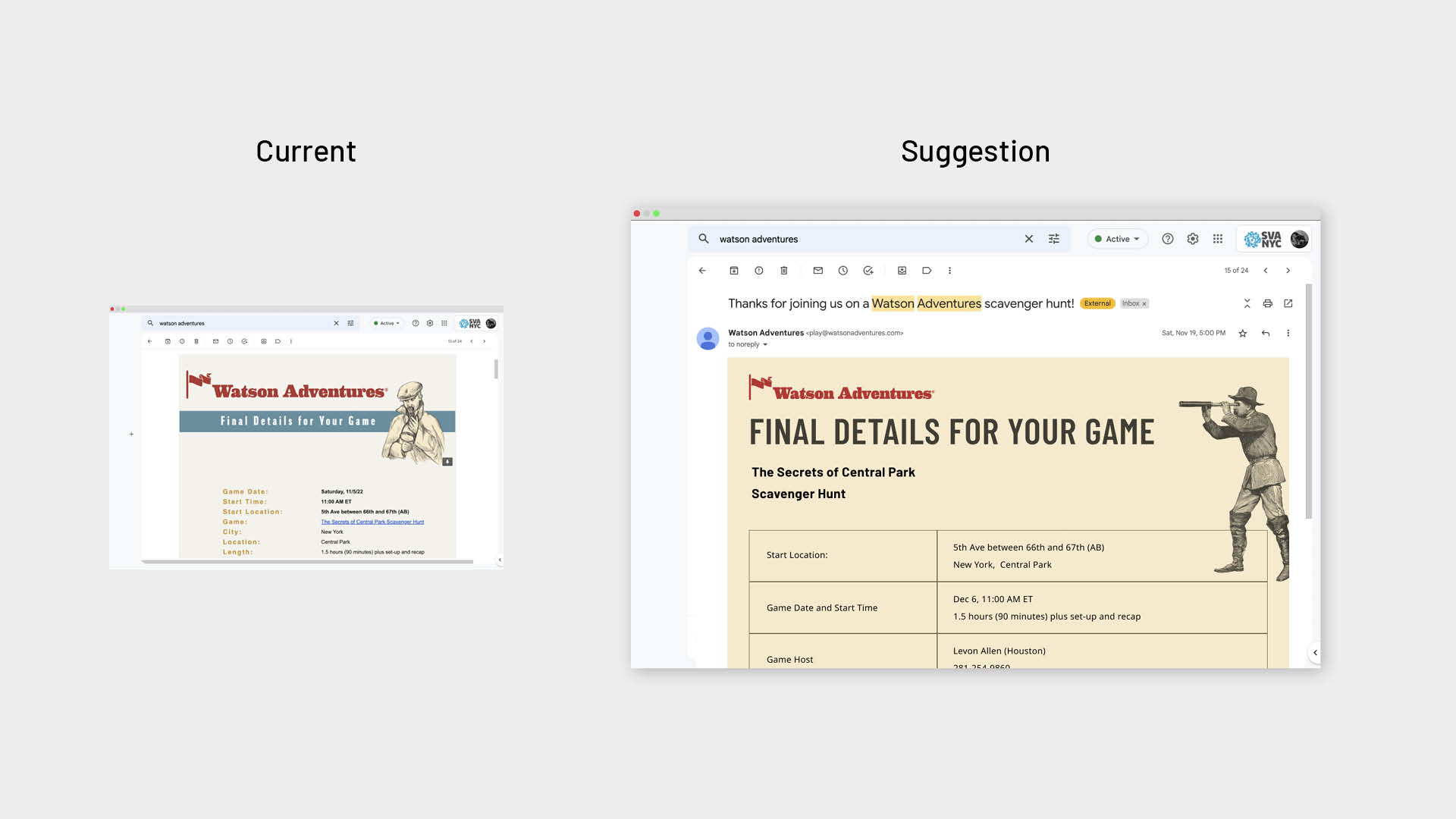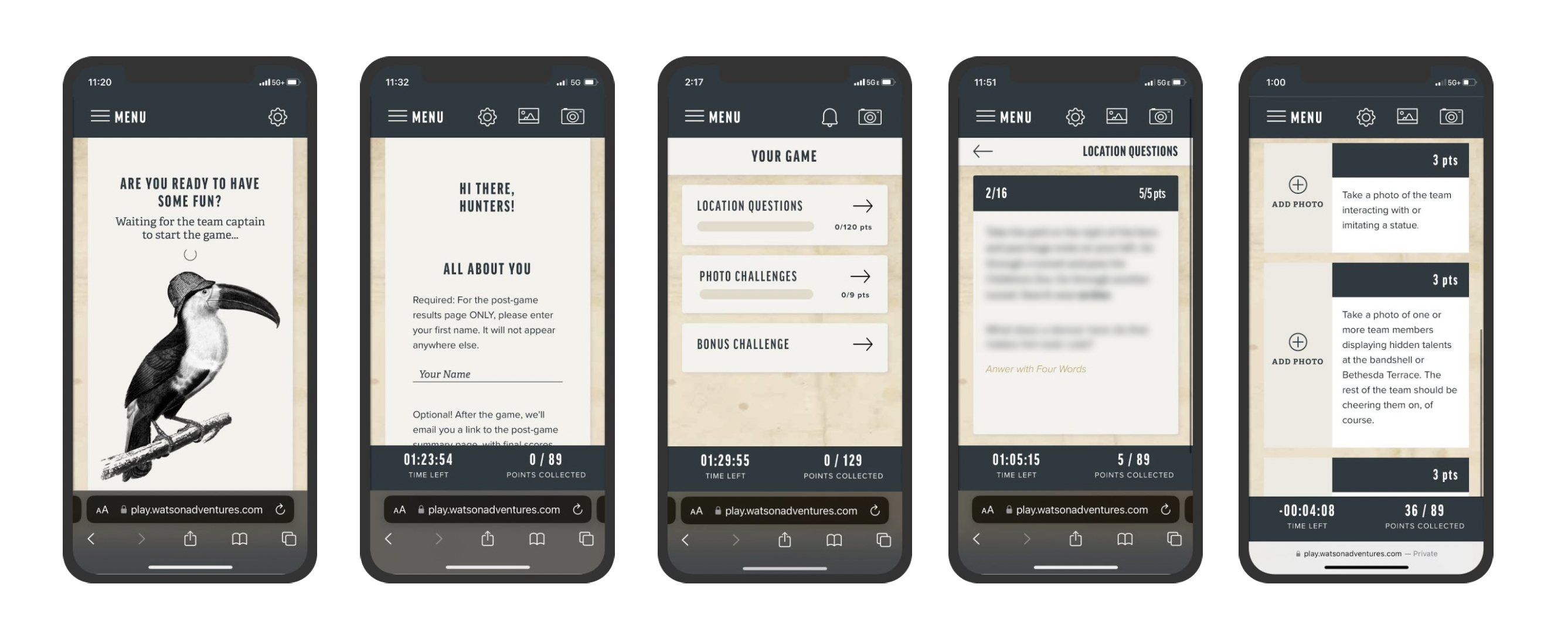 Watson Adventures is a company that provides scavanger hunt events. The company was founded in 1999, and around 500,000 participants across the US. It was designed for general public of all ages as well as corporate groups for team building. They provide fun ways to explore museums, famous public spaces (parks, monuments), and neighbourhoods.